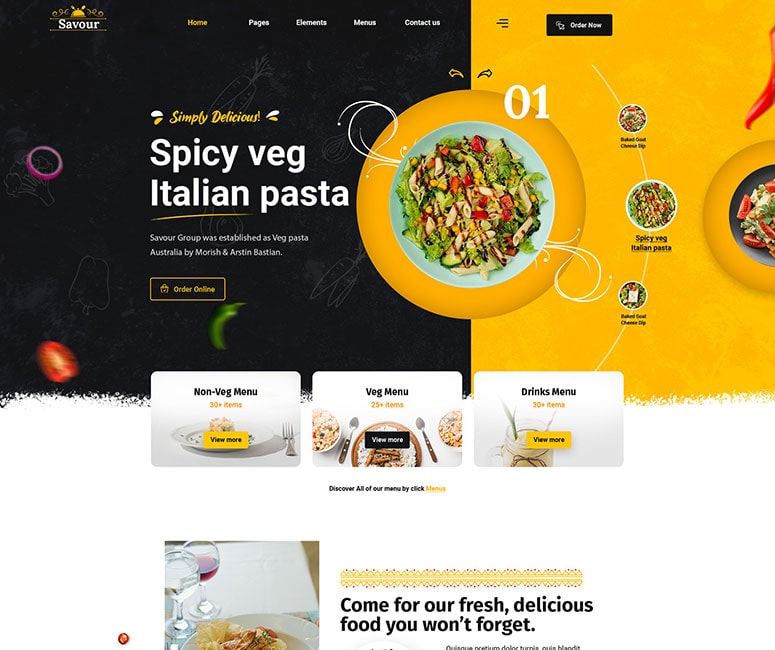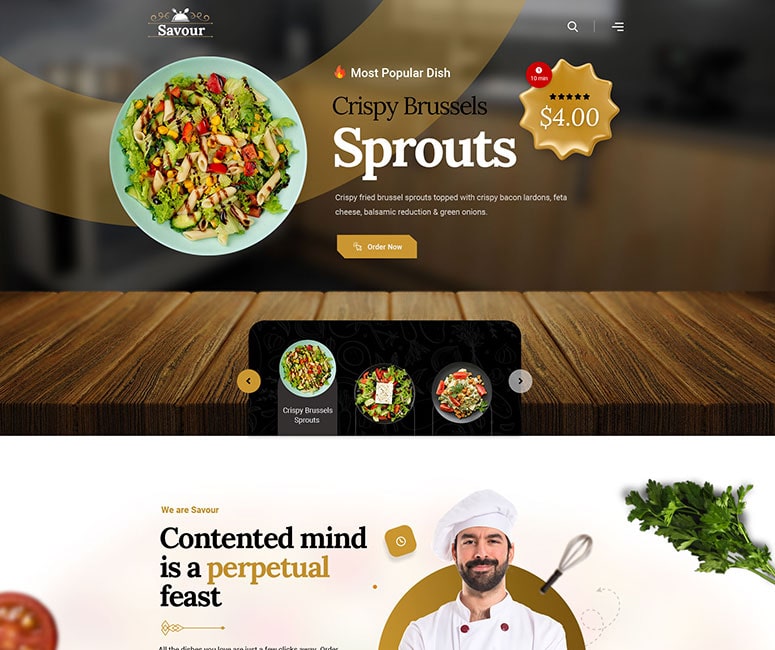 With Savour you can create the perfect restaurant menu and display your dishes in a truly captivating manner. Choose your preferred skin type, decide how you would like to order your specialties and mark the most favored delicacies on your menu.